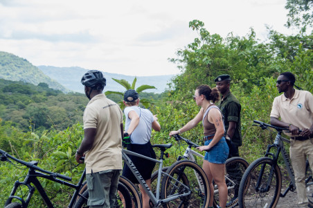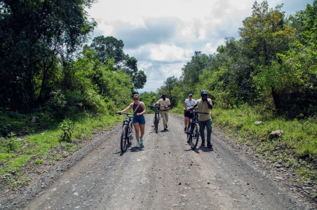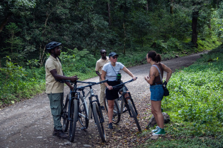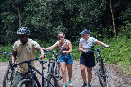 You will enjoy a short game drive through the park en-route to the starting point of the Mbega cycling route. A ranger will accompany the ride since it is possible to encounter buffalo. Other animals likely to be seen are Colobus Monkeys, giraffes and various birds species. The ride is partly on a gravel track and partly on a small animals track that can allow for some muddy riding. There are steep up and steep down parts during this ride.
